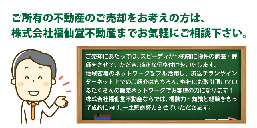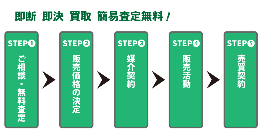 まずは、お電話にてお問い合わせください。 ご売却希望の物件近隣の事例、公示価格などのデータを参考にして、ご売却希望の物件がいくら位で売れるのかを簡易査定いたします。 具体的に売却をお考えの場合は、実際に現地を拝見させていただき、詳細な訪問査定をいたします。 また、ご希望があれば弊社買取価格の査定も承っておりますので、お気軽にご相談ください。